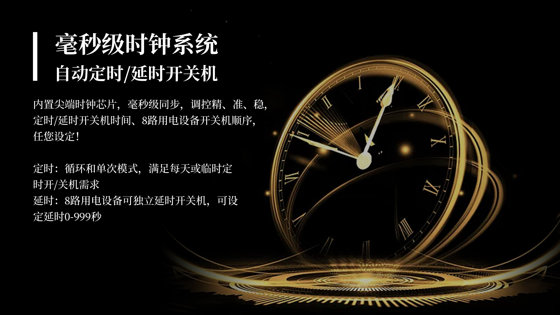 可控制電源:8路,外加1路輸出輔助通道 | 每路動作延時時間:0到999秒 |
