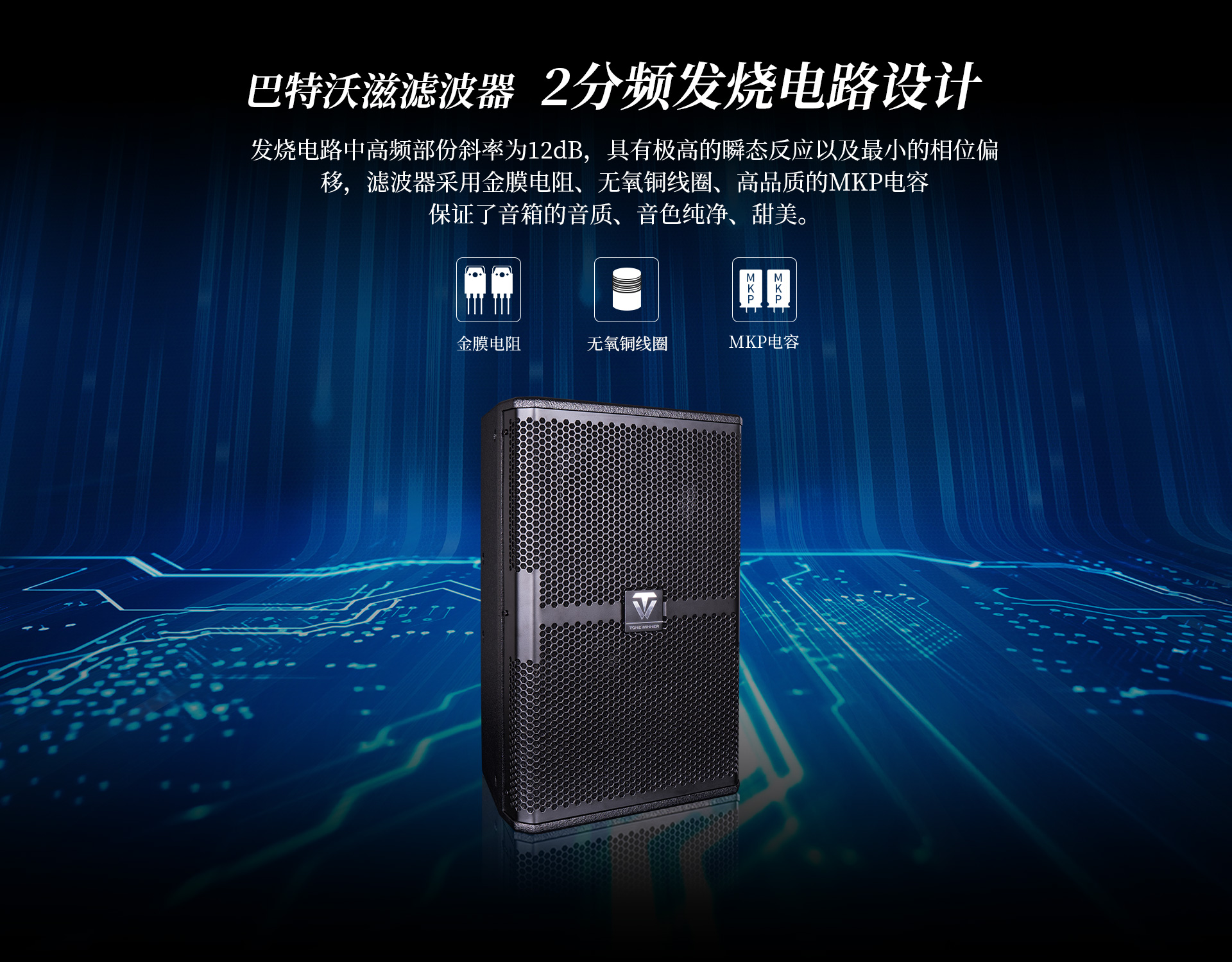 1、二分頻專業全頻音箱,具有高功率、高靈敏度、高聲壓、高可靠性;適用于量販式KTV、會議、專業影院、舞臺返聽、多功能廳等擴聲場所;