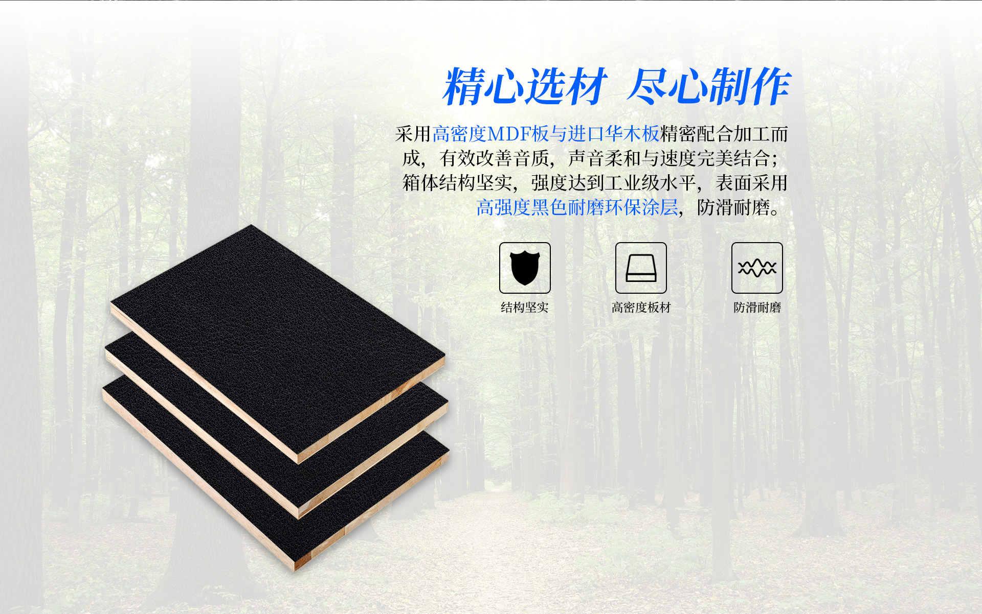 2、箱體采用特殊設計的高密度MDF板精密配合加工而成,有效改善音質,讓聲音的柔和與速度完美結合;