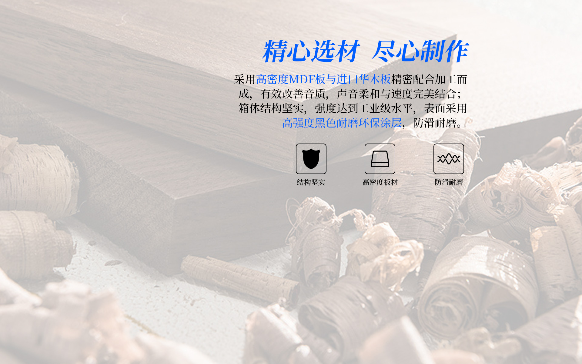 2、箱體采用特殊設(shè)計(jì)的高密度MDF板精密配合加工而成,有效改善音質(zhì),讓聲音的柔和與速度完美結(jié)合;