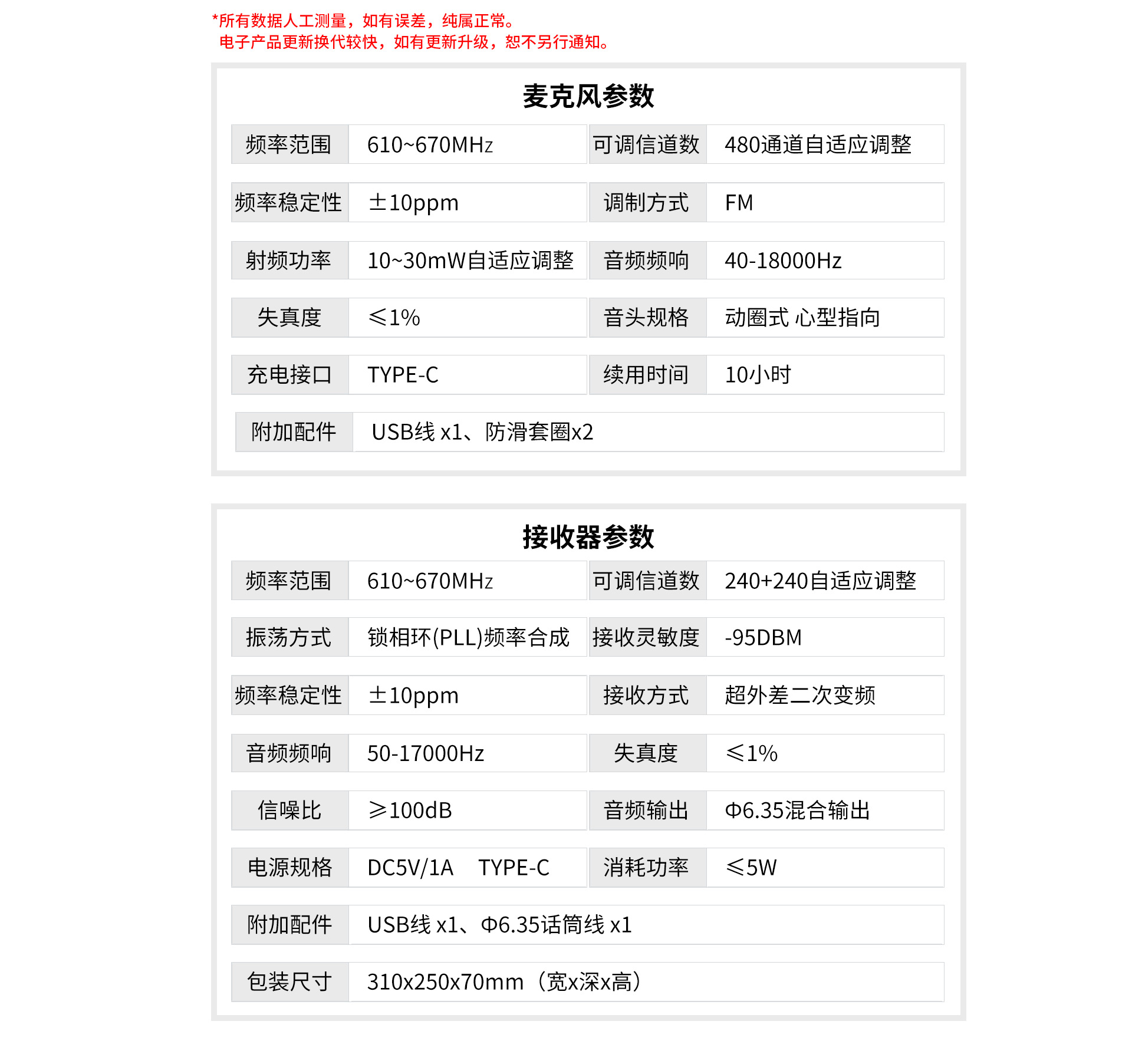 產品型號:麥克風參數