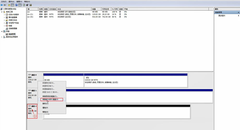 問題是,分區工具無法轉換MBR,這里要知道一個原因,那是分區工具不能在存有資料的情況下轉換分區表,如果把硬盤的所有分區都刪除掉,轉換MBR那就好解決了。
